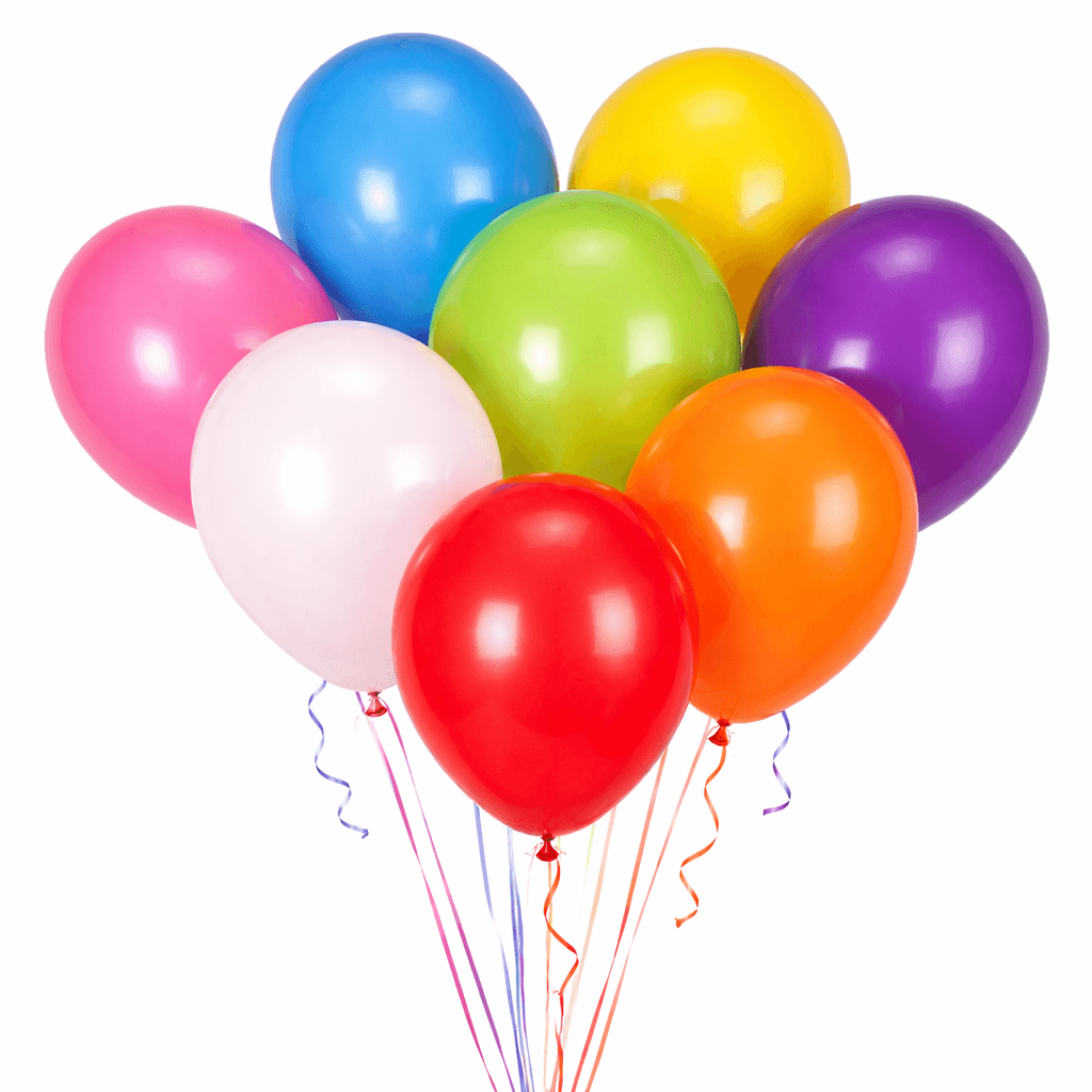 Įvairių spalvų balionų rinkinys. Balionai pripildyti helio dujomis.