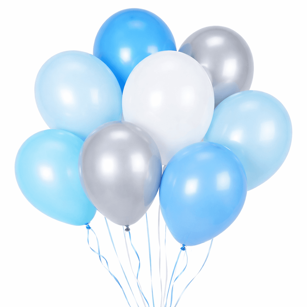 Melsvų balionų rinkinys. Balionai pripildyti helio dujomis.